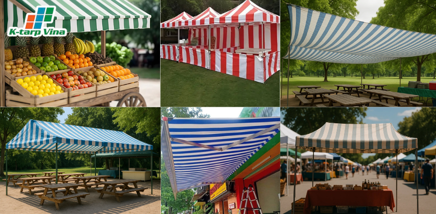 They also protect perishable goods, cooking equipment, and packaging from weather damage. A striped tarp not only shields products but also acts as a visual marketing tool that attracts foot traffic.