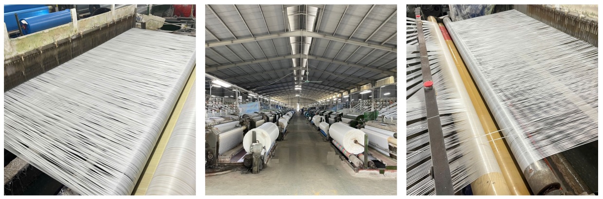Yarn is wound and loaded into the machine to manufacture fabric. The factory is equipped with numerous water jet loom weaving machines, which produce a diverse array of fabrics in succession. In this manner, the fabric is finalized, with a finished width of approximately 2.1 meters.